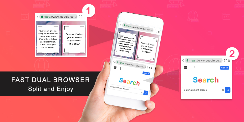 Облегченный веб-браузер с двумя вкладками на одном дисплее. Вы можете одновременно открывать и отображать на экране два отдельных веб-сайта.