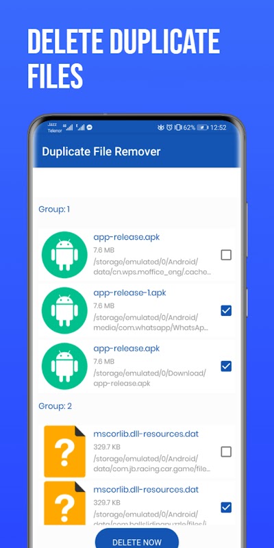 Легко находите и удаляйте дубликаты файлов, включая APK, PDF, документы и многое другое.