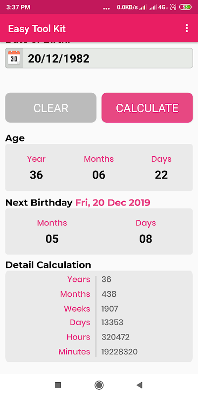 Easy Tool Kit is a very easy age calculator to calculate your actual age and find days between two dates. Finding difficult to calculate your exact age in years, months and days from your date of birth? Use this amazing Easy Tool Kit Age Calculator app to calculate your exact age in years, months and days and even seconds using your date of birth.