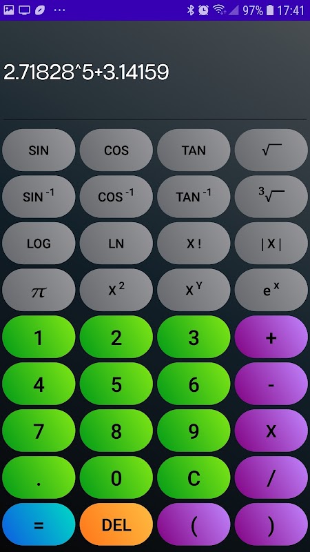 Этот калькулятор предназначен для простоты использования для большинства ваших повседневных потребностей. Он обеспечивает использование сложения, вычитания, умножения и деления. Он также обеспечивает использование скобок для расширенных вычислений и использование некоторых научных функций, таких как факториал, квадратный корень и тригонометрические функции. Он предназначен для простоты использования и содержит аккуратный макет с понятными кнопками, а кнопки имеют разные цвета для разных типов функций.
