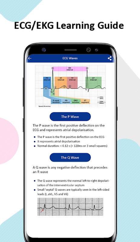 Приложения для электрокардиографии содержат все основные сведения об ЭКГ/ЭКГ, ее волнах, интервалах и сегментах, понимание ЭКГ-бумаги, как ее читать.