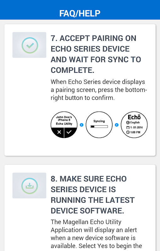 The official Echo and Echo Fit support App. Echo Utility connects to your Magellan Echo or Magellan Echo Fit to set time, change display settings, check device status, and perform updates.