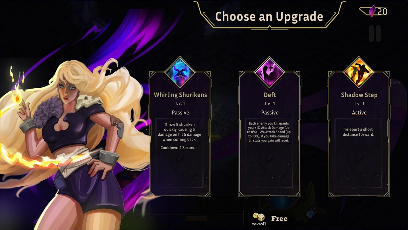 Столкнитесь с бесконечными волнами врагов, используйте мощные способности и развивайте своего чемпиона по мере продвижения в битве. Echoes of Eclipse бросает вам вызов, чтобы вы двигались вперед — каждая выжившая секунда — это еще один шаг в неизвестность.