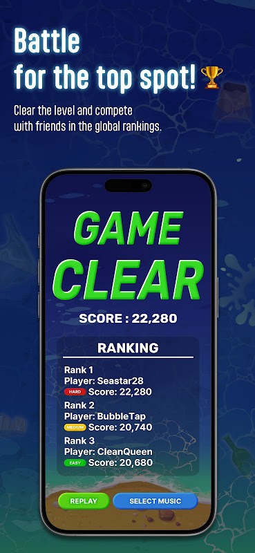 ● Ритмичный геймплей с уникальной темой очистки океана