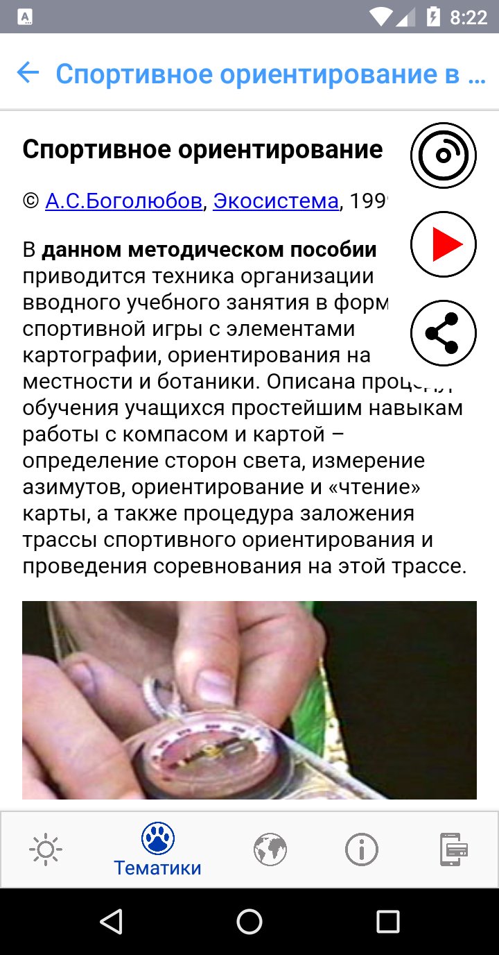 Все 65 пособий, собранных в приложении, разделены по 6 тематикам: Ландшафтоведение (физическая география), Ботаника и геоботаника, Зоология позвоночных и беспозвоночных животных, Водная экология и гидробиология, Биоиндикация и экологический мониторинг (а также комплексные исследования и программы), Игровые и практические работы и проекты.