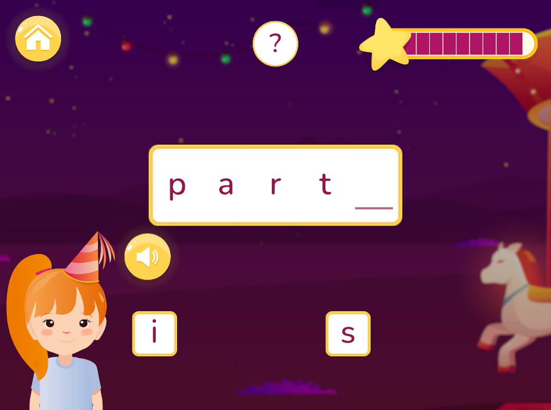 Ребенок слышит слог или слово и записывает его, нажимая на соответствующие буквенные обозначения. Если слово написано хорошо, ребенок сразу получает положительный отзыв. Если он содержит ошибку, студенту предлагается повторить попытку. Правильные буквы остаются в ячейке ответа, а слоговая сегментация слова слышна и видна в поле ответа. Если он снова терпит неудачу со второй попытки, ему немедленно показывают правильно написанное слово в сочетании с его устной формой, чтобы дать ему возможность увидеть, как оно написано правильно, и сравнить его со своим собственным ответом.