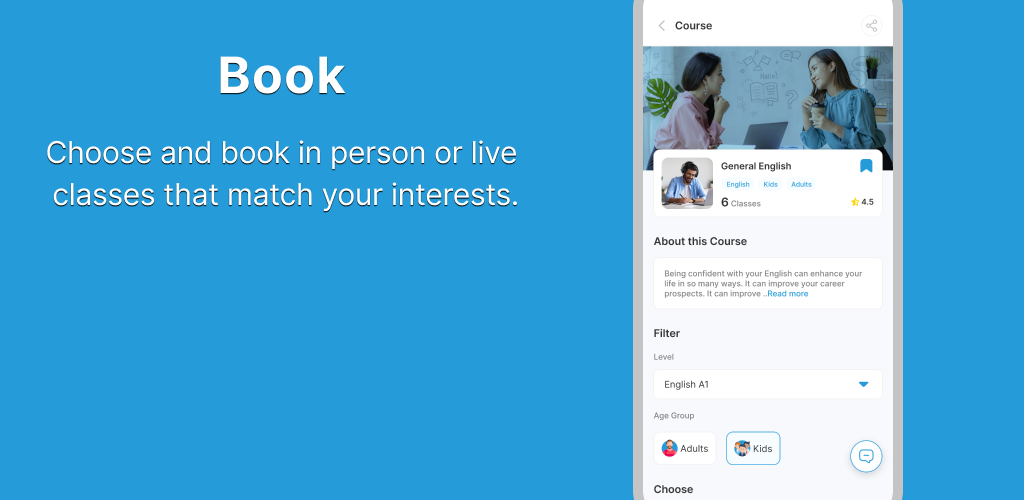 Приложение ED World позволяет вам бронировать очные и живые занятия, предлагаемые различными поставщиками. Будь то английский язык или йога, математика или кроссфит, изучите различные занятия, предлагаемые разными поставщиками, а также их расписания. Забронируйте любимые занятия онлайн и получите уведомление о начале занятий.