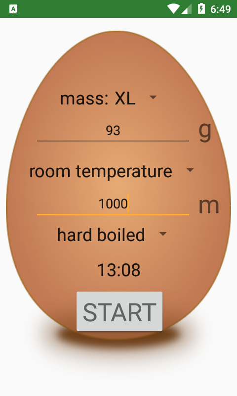 With this app you can cook your eggs physically correct. Just enter the weight class or weight of the egg, its height above the sea level, the starting temperature and the desired degree of hardness and your eggs will be perfect!