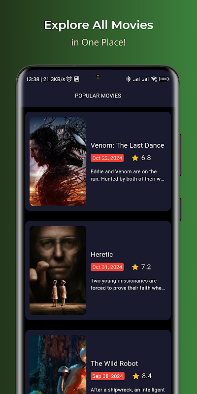 Приложение позволяет пользователям просматривать трейлеры к фильмам и шоу, прежде чем перейти к полному просмотру, предоставляя быстрый и увлекательный предварительный просмотр, который поможет принять решение о следующем просмотре.