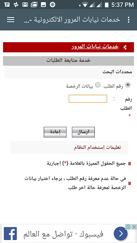 هذا التطبيق يعتمد على البوابة الرسمية للحكومة المصرية - قطاع نيابات المرور ويشتمل على: