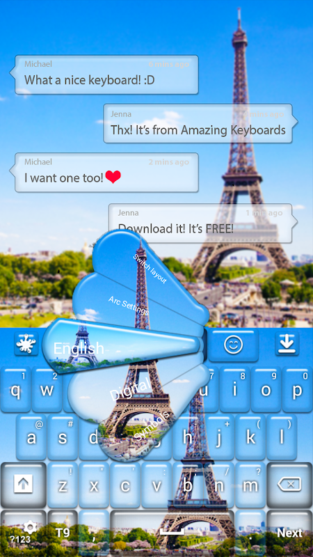 Мы разработали эту клавиатуру с красивой Париже в фоновом режиме и Эйфелевой башни гордо и высокий над всеми ключами.