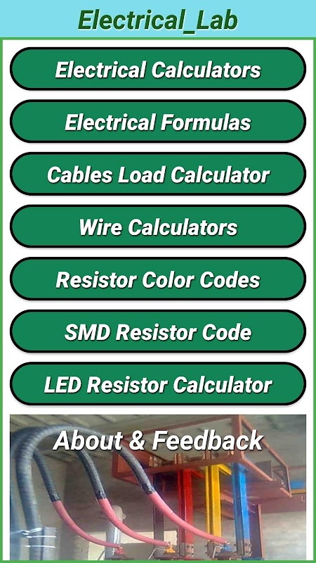 Электрическая лаборатория - это усовершенствованное приложение для электрических расчетов и формул. Он дает самый быстрый и точный расчет за один клик. Существует много компонентов, таких как SMD, Resistor, Led и там, где вы можете выполнить свою работу.