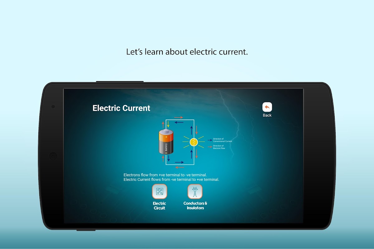 Приложение иллюстрирует процесс изоляторов и проводников, электрического тока и электрического потока и электрического сопротивления с использованием очень упрощенные и интересные методы обучения. Кроме того, приложение Электрических физик Количества помогает рассчитать электрическое напряжение и электрическое сопротивление. С целью сделать понятия простыми и интересными для студентов, приложение разработано с анимацией, виртуальными экспериментами и мероприятиями. Такие виртуальные эксперименты и мероприятия будут убедиться, что студенты получают более любопытно о предмете и понимают концепцию должным образом.