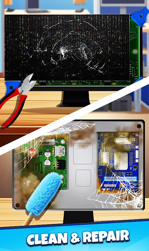 Проверьте свои навыки в играх по ремонту вещей и играх в ремонтной мастерской, выполняя все более сложные задания и улучшая свои профессиональные навыки ремонтника и механики ПК в моей игре в магазин электроники. Эта игра по ремонту электроники позволяет вам погрузиться в подробный мир игр по ремонту офлайн. От игр по ремонту ноутбуков до игровых задач по ремонту электроники PC Builder, изучите все аспекты ремонта электроники и сборки ПК в играх по ремонту. Очистите пыль, почините сломанные детали и узнайте, как чинить компоненты бытовой техники и способы ремонта электроники ПК в этой захватывающей игре по ремонту электроники.