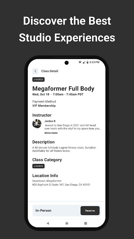 Легко фильтруйте расписание студии по предпочитаемому местоположению, категории фитнеса, типу класса и инструктору, чтобы вы могли найти следующую тренировку за считанные секунды! Кроме того, все настройки фильтров и избранное автоматически сохраняются, что экономит ваше время при бронировании занятий в будущем.