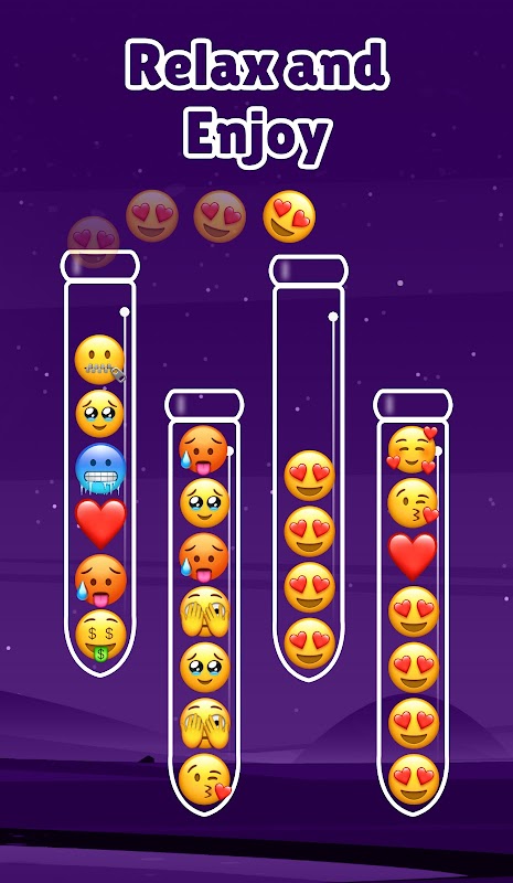 Relax your mind and Train your brain. Simple, yet challenging Emoji Sort Puzzle Game.