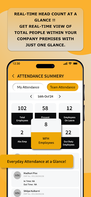 Получайте мгновенные push-уведомления об обновлениях посещаемости, разрешениях на отпуска, заявлениях на дежурство и других ключевых событиях.