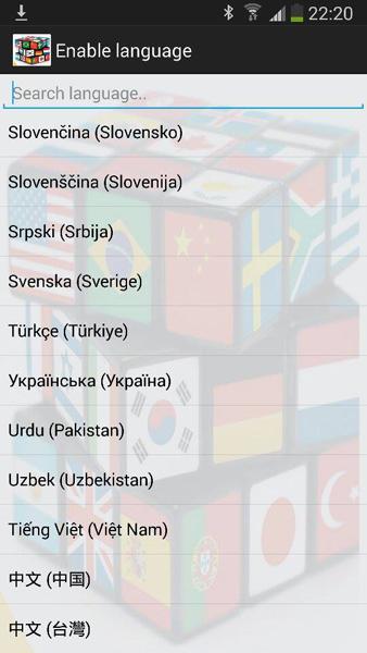 Поскольку многие ром из Android имеют не полный набор языковой системы , иногда это очень трудно установить нужный язык в phone.Or если функция пользовательского языкового меню не поддерживают свой язык , вы можете попробовать это приложение!