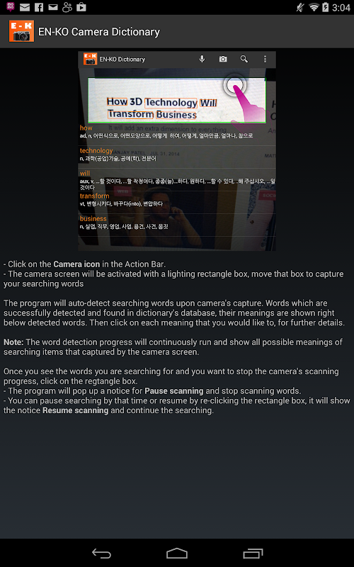 Oписание English Korean Camera Dict