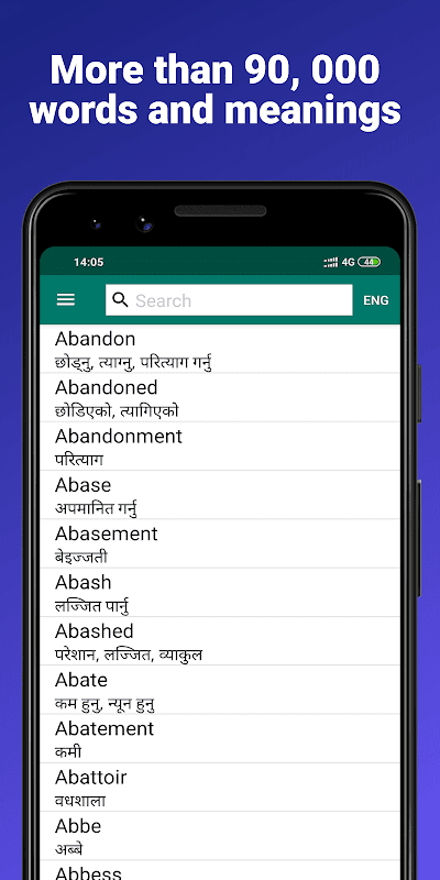 अङ्ग्रेजी नेपाली शब्दकोश प्रयोग गरि सरल रूपमा अङ्ग्रेजी सिकौँ र जीवनमा प्राप्त गरौँ।