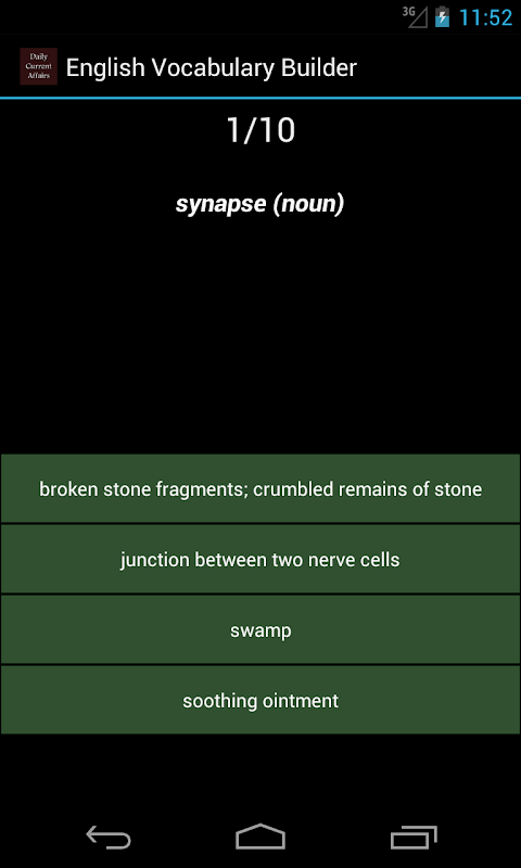 English Vocabulary builder provides you complete material to make vocabulary fast. Its will improves your English grammar and Speaking skills,