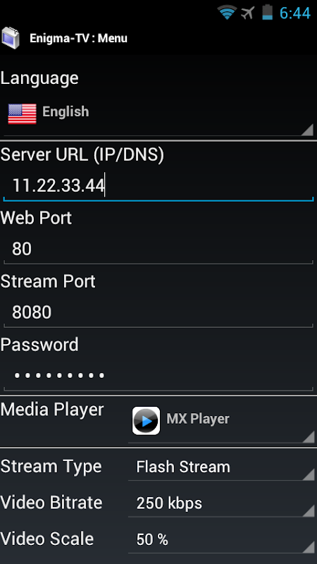 Сервер инструмент должен быть установлен на компьютере и начнется видеопотока основано на указанном порядке с помощью Enigma-TV для Android.