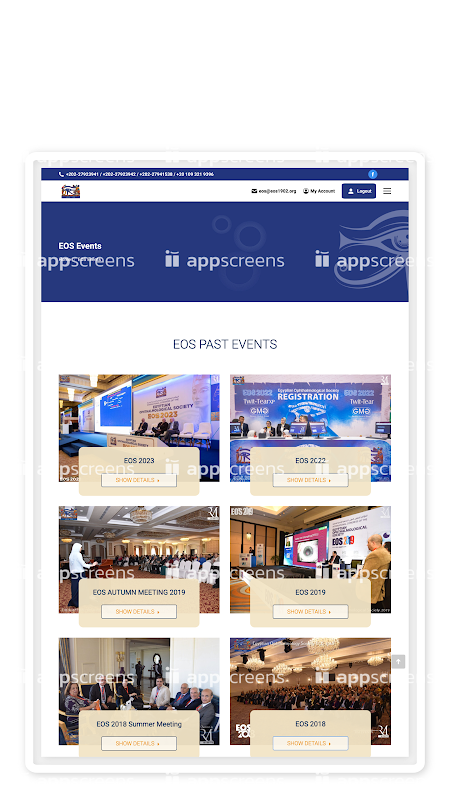 EOS application for Egyptian Ophthalmological Society all concern events information events education materials all announcements the board members users can login to the account mentioned before and find all your personal information for your society membership status make subscription and enjoy all even't and educational materials