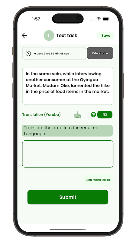 Пожертвуйте данные и заработайте деньги. Выполняйте задания по сбору данных и зарабатывайте дополнительные деньги. Вносите вклад в создание высококачественного мультимодального набора данных. Участники смогут участвовать на платформе и предоставлять свои материалы для различных задач, назначаемых на основе их различного опыта, домена, диалекта и местоположения, и получать оплату за выполненные и проверенные задания. Вносите вклад в создание моделей ИИ для носителей языка в Африке.
