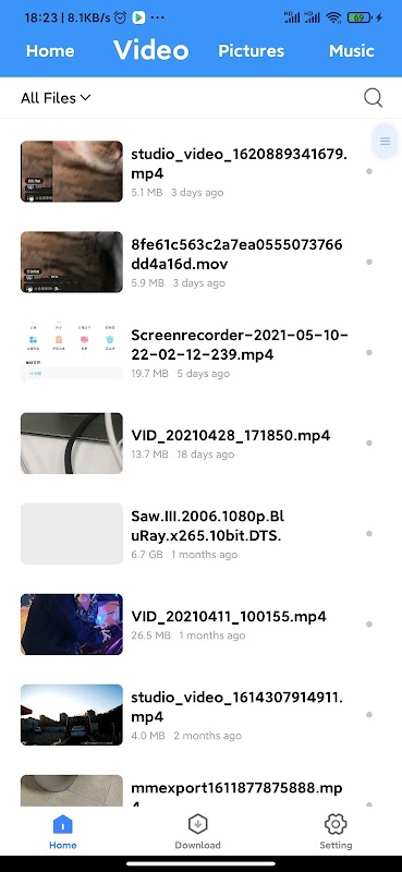 搜索功能:搜索手机内所有文件,视频音乐快速搜索;
