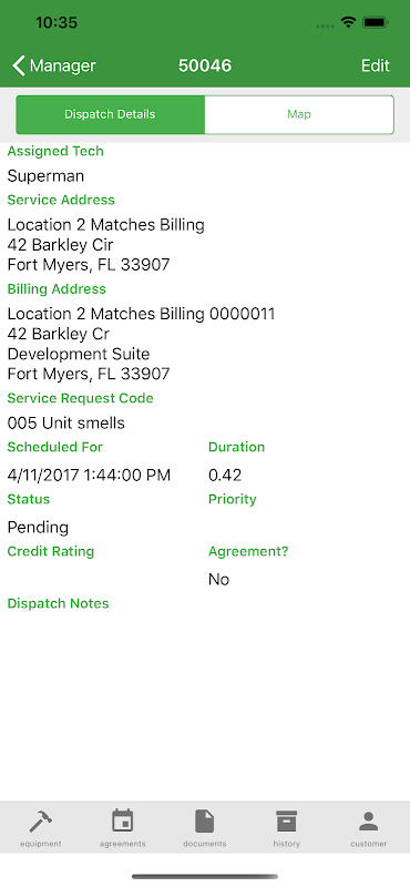 • Добавляйте и редактируйте оборудование клиента в учетной записи или отправке.