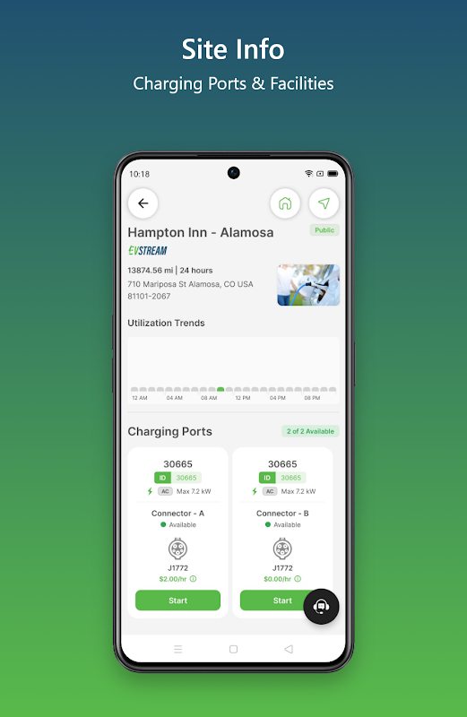 - Экран подробной информации о сайте: вы можете просмотреть подробную информацию о зарядных станциях, включая местоположение, доступность, удобства, цены, время работы и многое другое.