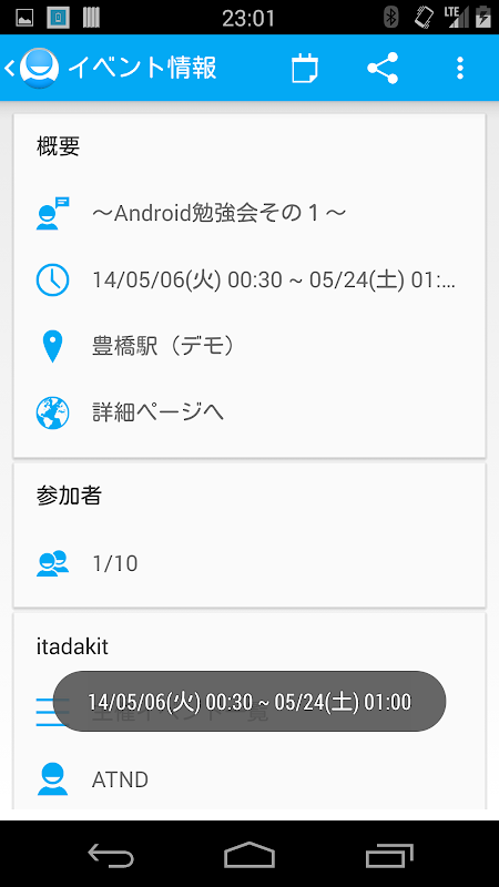 Evendroidはイベント支援サイトATND betaの専用ブラウザです。
