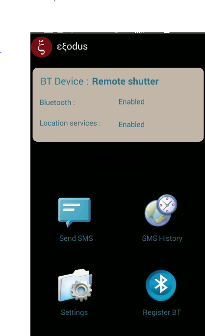 Η συγκεκριμένη εφαρμογή αποστέλλει SMS σε προκαθοριεμένο τηλέφωνο με την τοποθεσία μέσω Bluetooth shutter.