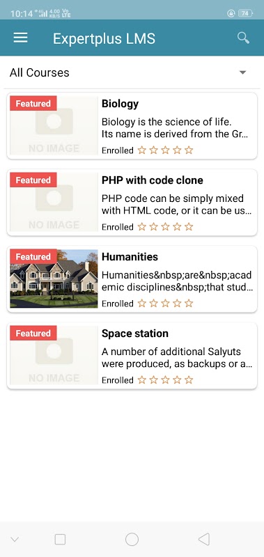 Приложение Expertplus LMS помогает предлагать онлайн-курсы через смартфон. В отличие от академических программ, предлагаемых традиционными колледжами и образовательными институтами, эксперты в различных нишах могут создавать свои собственные курсы и учебные материалы и предлагать их широкой публике по цене или бесплатно. Учащиеся могут покупать курсы, получать материалы курса, смотреть видео, слушать аудио, учиться в Интернете и получать действующий сертификат через свой смартфон.
