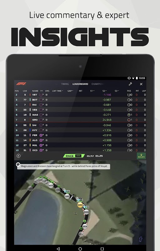 The full Live Timing features are back in a separate app available on Android phones and tablets so you can follow every twist and turn of the live races.