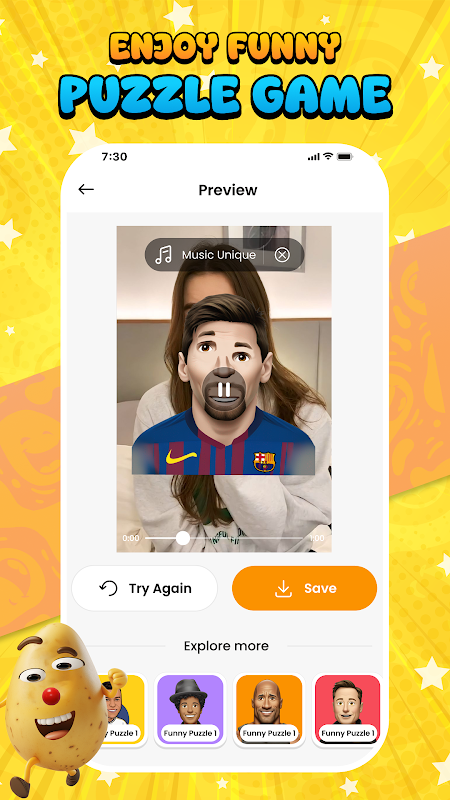 🌟 Записывайте забавные видео с вашим лицом-головоломкой или предустановленным персонажем.