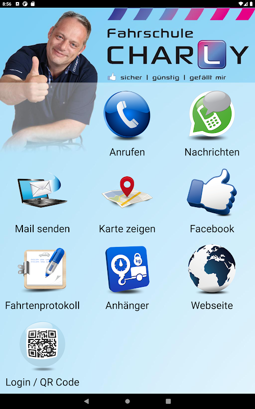 Используйте приложение Fahrschule Charly, чтобы войти в контакт с вашей школе вождения в Германии Берг.
