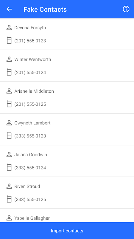 ✏️ Полная настройка: редактируйте имена, фамилии и номера телефонов, чтобы адаптировать ваши поддельные контакты к вашим конкретным потребностям.