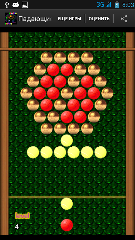 Играйте в интересную игру в мячики.Вам нужно составить комбинацию из трех и более мячиков,а затем сбить их.И перейти на новый уровень