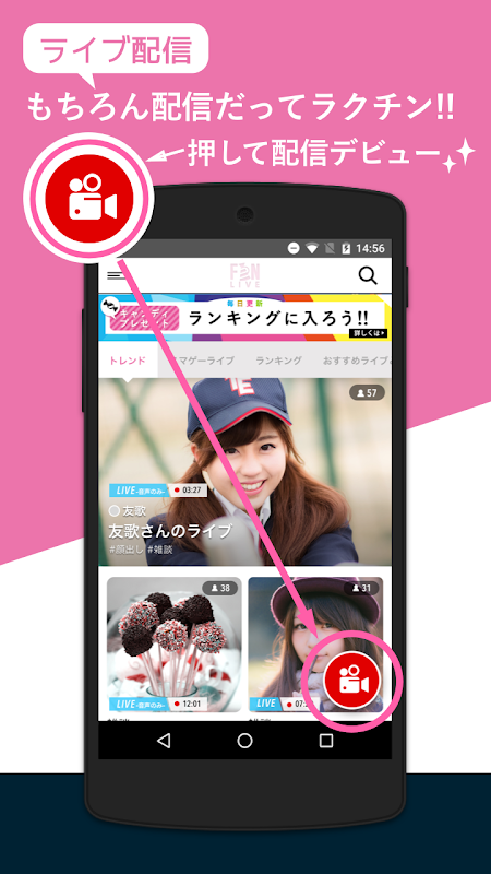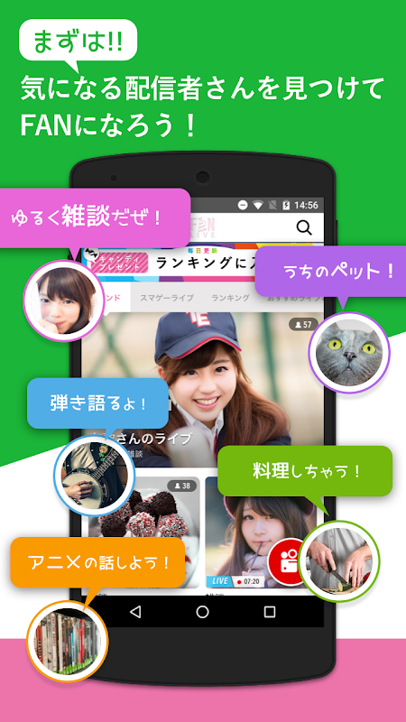 FAN LIVEはいつでも簡単にライブ配信、視聴ができるライブアプリ!高画質でライブ配信、視聴できます!またコメントやプレゼントで配信者も視聴者も大盛り上がり!