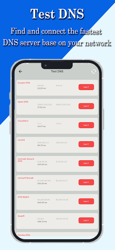 Fast DNS Changer используется для изменения вашего DNS и проверки скорости DNS-серверов. Он работает без рута и работает как для WiFi