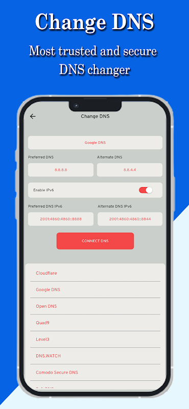 и подключение к мобильной сети для передачи данных. DNS Changer изменяет DNS-адрес вашего устройства, не влияя на скорость вашего соединения.