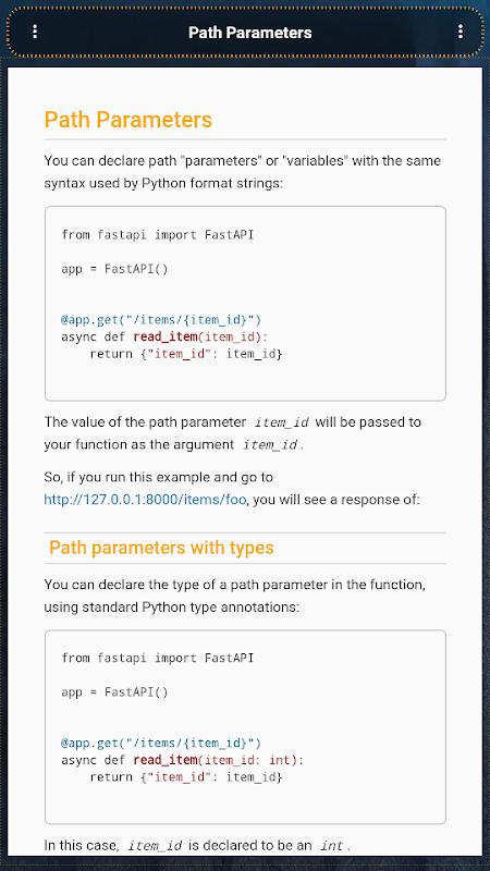 Это крошечное, красивое и современное приложение, которое позволяет вам изучить структуру Fast API от начала до конца в автономном режиме. FastAPI — это современная высокопроизводительная веб-инфраструктура для создания API-интерфейсов с Python 3.7+ на основе стандартных подсказок типов Python. Вы можете использовать это приложение, чтобы узнать его от начала до конца. Приложение чистое, красивое и не отвлекающее.