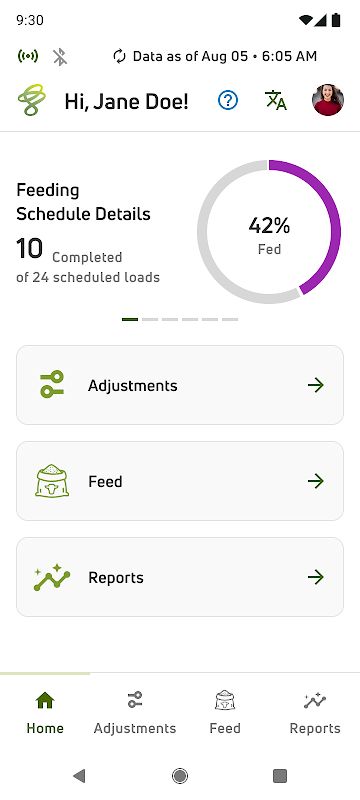 Просматривайте подробные отчеты о производительности кормушки, потреблении сухого вещества и многом другом.