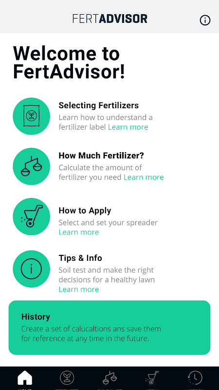 FertAdvisor assists homeowners and turfgrass practitioners in calculating the amount of lawn fertilizer needed, drop and rotary spreader calibration, and reading a fertilizer label to properly apply fertilizer to turfgrass areas.