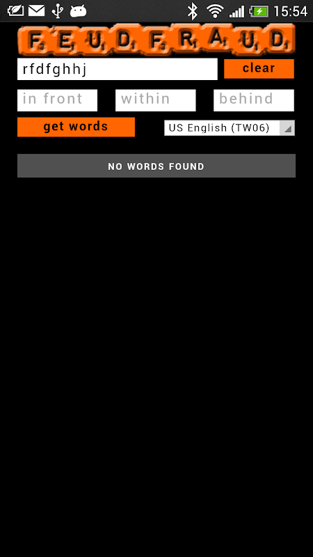 Когда вам не хватает немного вдохновения или когда вы на самом деле дело паршивый плитки, Feudfraud поможет вам найти самый длинный, самый умный и самый ценный слова в английском языке (Великобритания), SOWPODS США английском языке (TW06), голландский, шведский, норвежский, датский, французский, испанский и немецкий.
