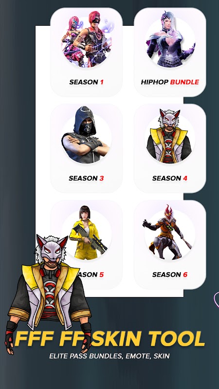 FFF FF Skin Tool is a simple app that allows users to entertain by getting Elite Pass Bundles, Emotes & Gun Skins for entertainment. This unlimited free Diamond earning app is easy to use and you can get elite pass & diamonds. We made free diamonds giveaways on daily basis.
