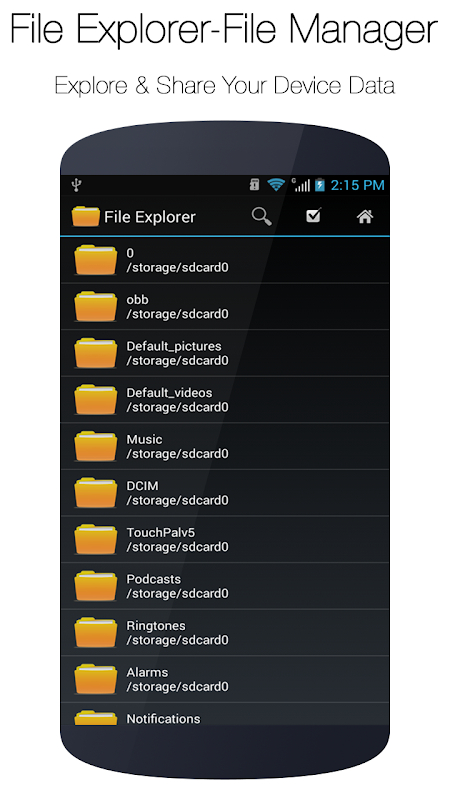Проводник позволяет Исследуйте / управлять и обмениваться файлами и папками с легкостью. просмотр содержимого телефона с карты SD довольно дизайн пользовательского интерфейса.