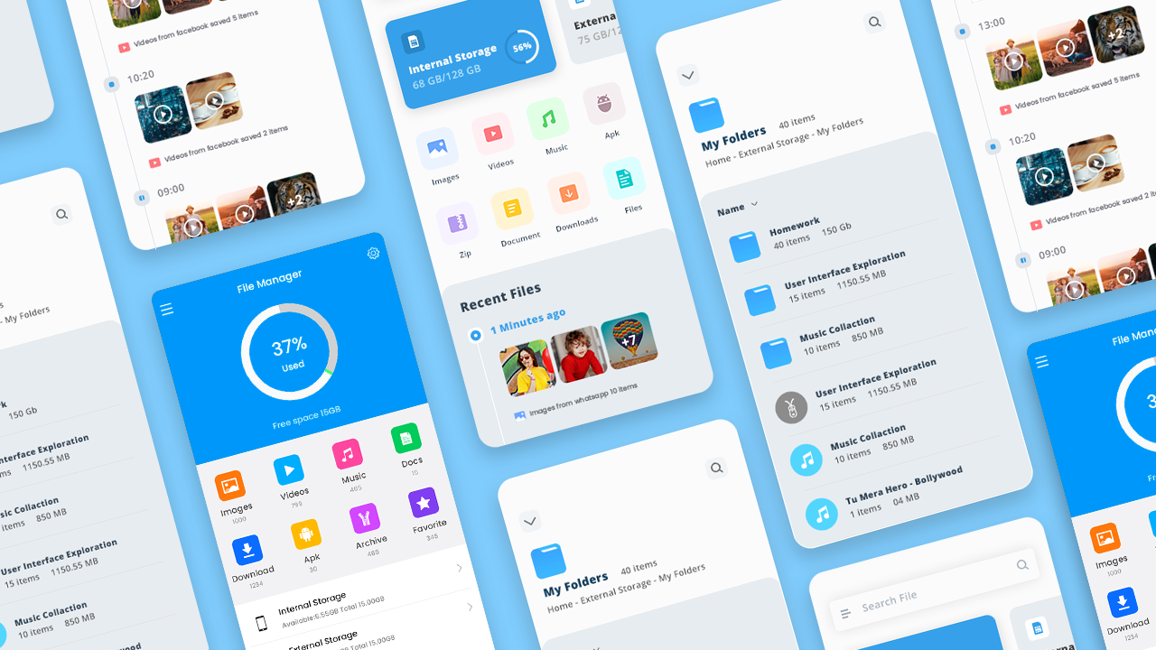 Hocket File Manager - explorer, clean & transfer, You can manage all files and folders on both your internal storage and external storage. Your files and folders are automatically sorted by their file types and characteristics.
