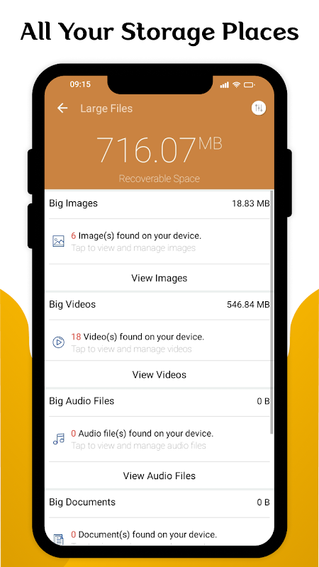 With this folder manager app, you can easily check your internal and SD card storage. It means you can see all the files according to their category and you can delete unwanted files by using this smart file manager app. With the clean-up function, there is the availability of huge space to save other important files, and this function boosts your phone too.